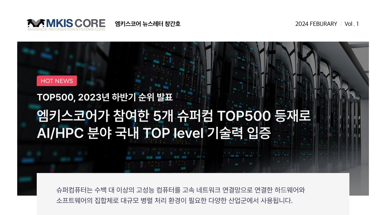 2024.10.07'2024년 9월 24일부터 25일까 이틀 간 Korea Supercomputing Conference 2024가 개최되었습니다. 엠키스코어는 Korea Supercomputing Conference 2024에서 차세대 수랭식 데이터센터인 AQUAEdge와…